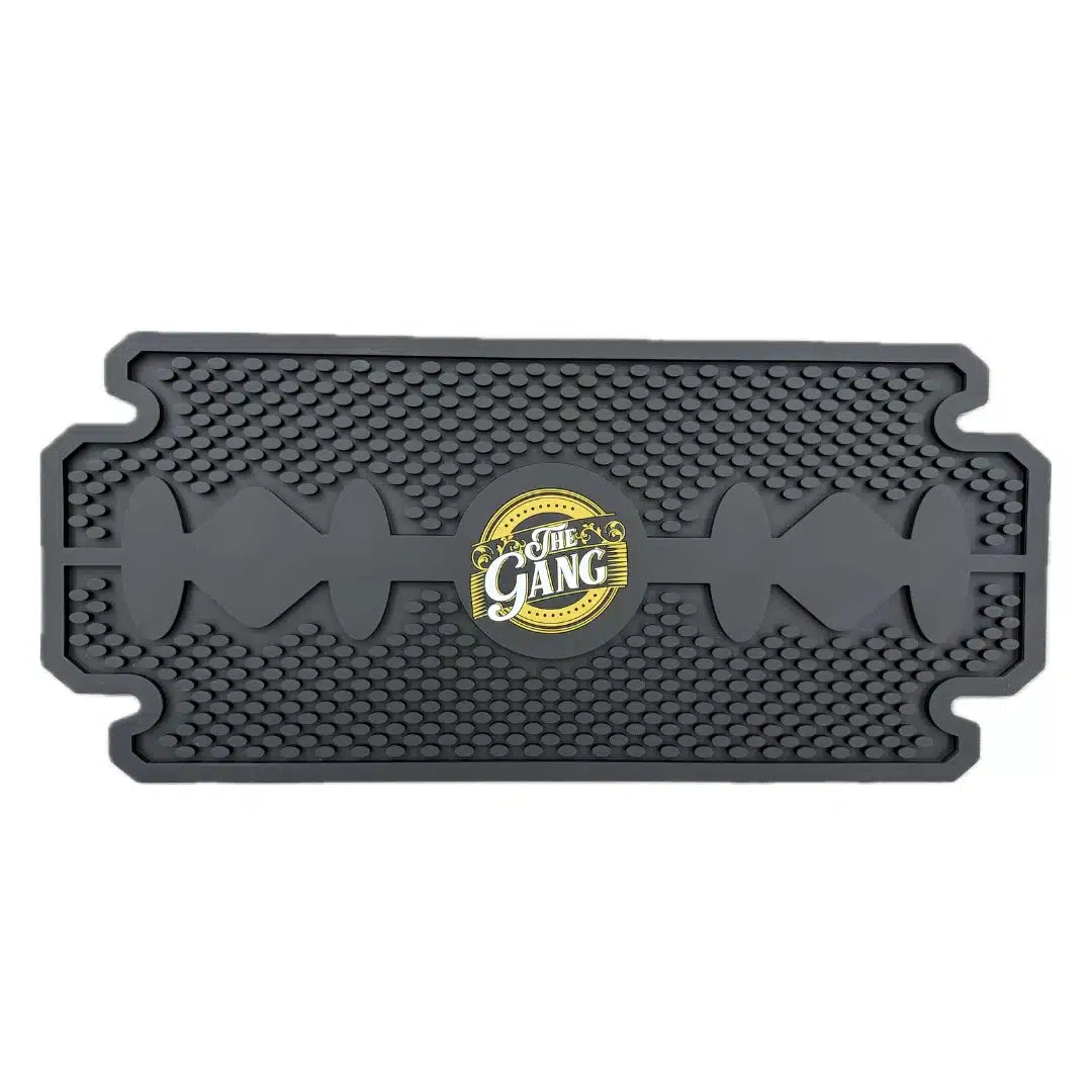 El tapete premium de THE GANG destaca por su diseño tipo cuchilla de afeitar, un guiño directo al arte clásico de la barbería, que no solo protege tu área de trabajo, sino que también eleva la estética de tu estación.